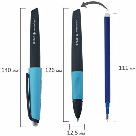 Ручка стираемая гелевая с эргономичным грипом BRAUBERG REPEAT, синяя, + 3 сменных стержня, 143663