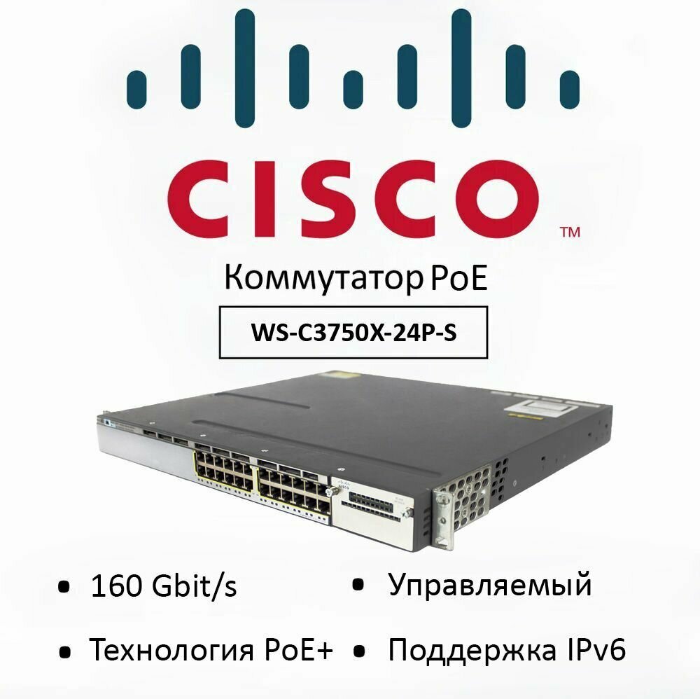 PoE Коммутатор Cisco WS-C3750X-24P-S, управляемый коммутатор интересное: