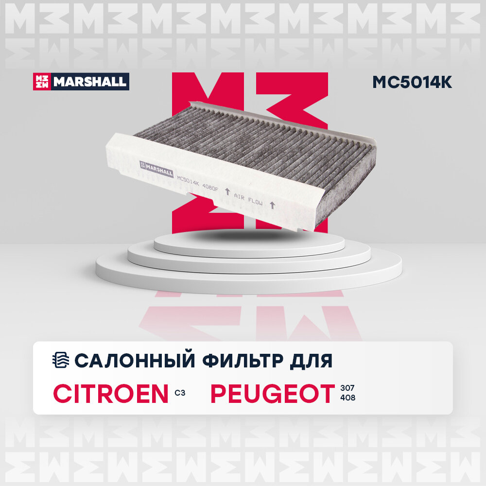 Фильтр салонный угольный citroen c3 01- peugeot 307 01- 408 12- (mc5014k), MARSHALL MC5014K (1 шт.)