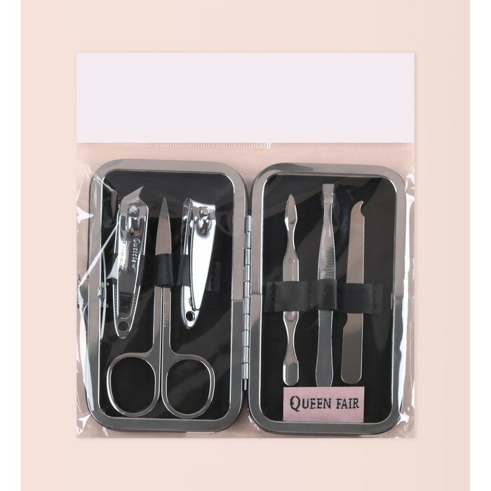 Queen fair Набор маникюрный «Тренд», 6 предметов, в футляре, цвет чёрный