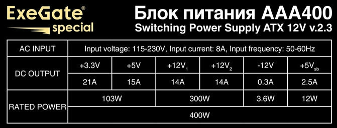 Корпус EXEGATE BAA-109U2-AAA400, черный (EX291273RUS)