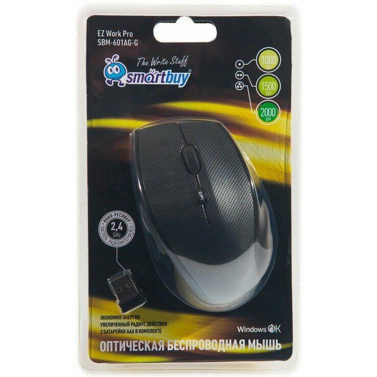 Мышь беспроводная Smartbuy 601AG USB/DPI 1000-1500-2000/6 кнопок/2AAA серый карбон (SBM-601AG-G)