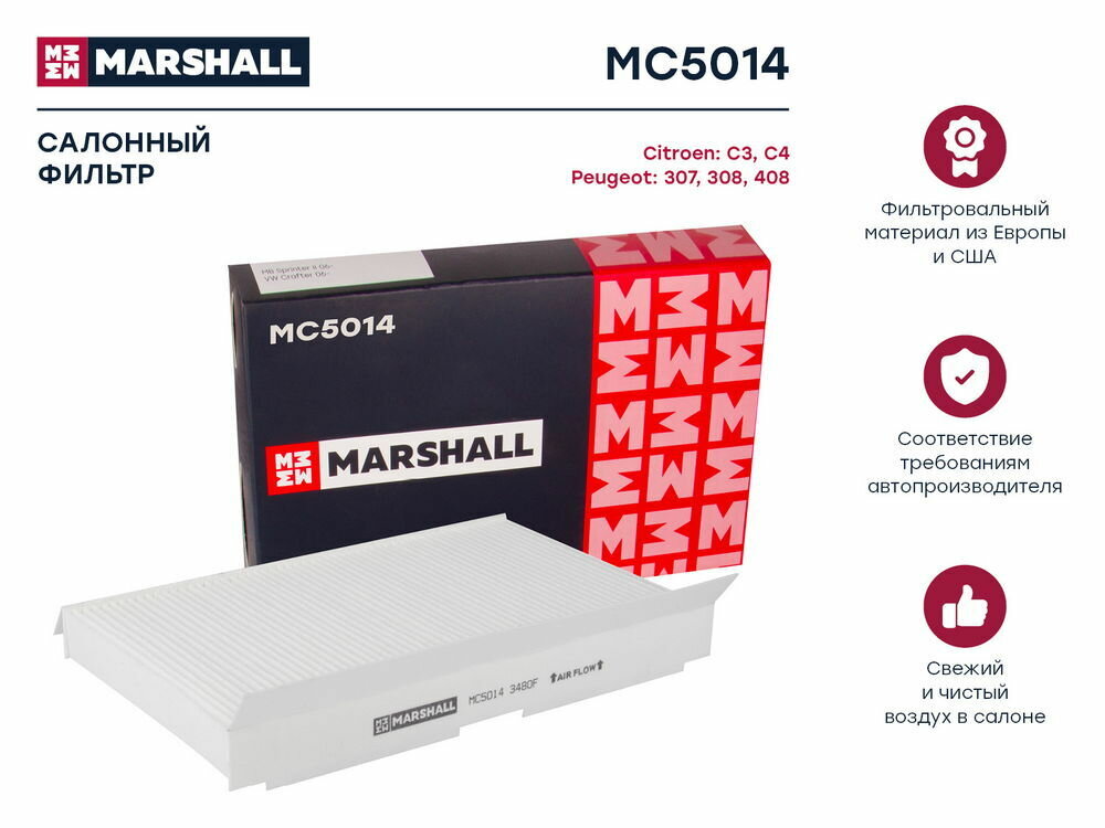 MARSHALL MC5014 Фильтр салонный Citroen C3 I 01- / C4 I, II 04-, Peugeot 307 01- / 308 07- / 408- (MC5014)