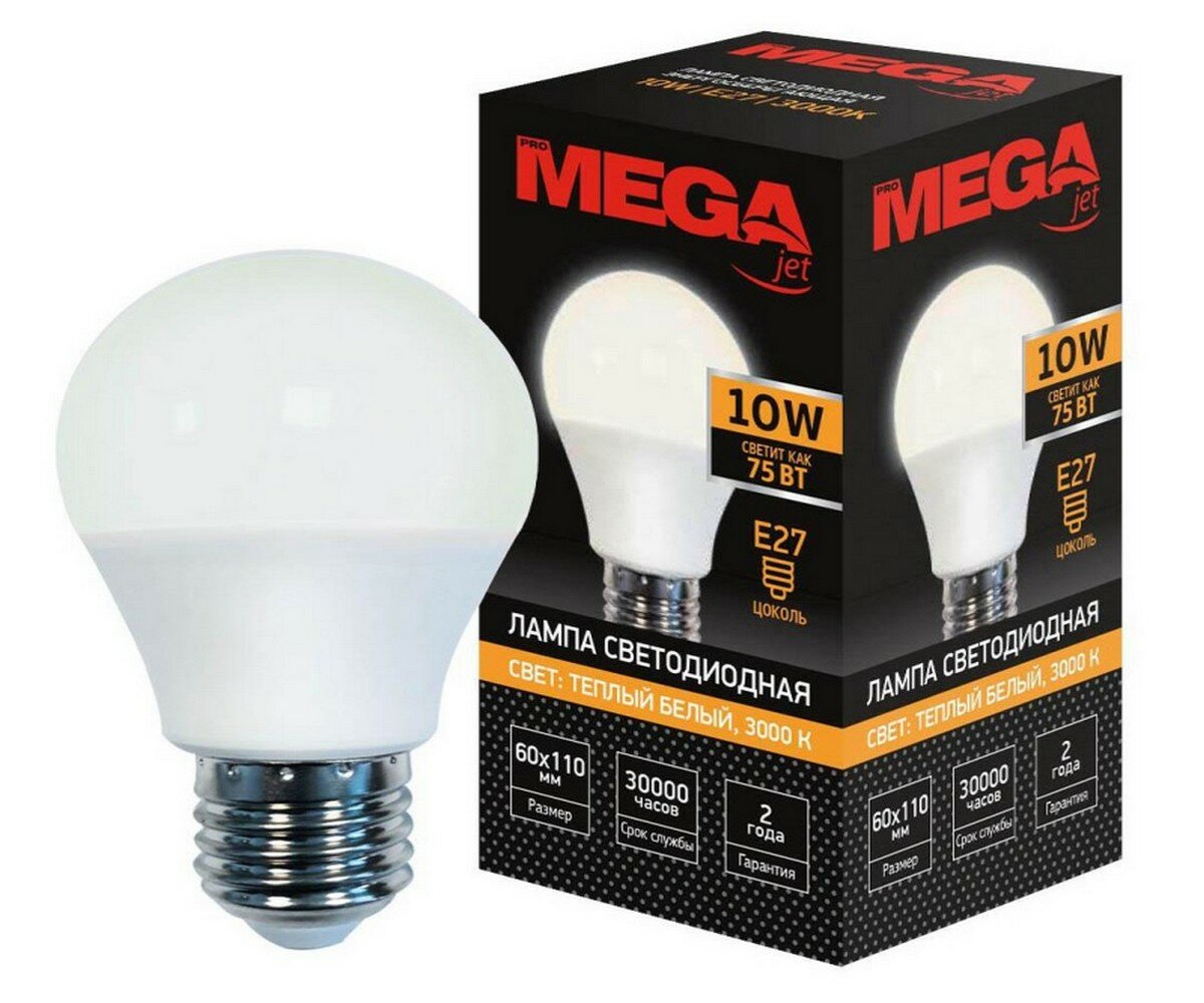 Лампа светодиодная Mega 10 Вт E27 3000 K грушевидная теплый белый свет ProMega jet 1053689 интересное: