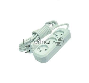 Удлинитель бытовой (MGP123) без заземления 3 м 10 А 250 В 2,2 кВт 3 розетки ПВС 2х0,75 мм2 IP20 белый