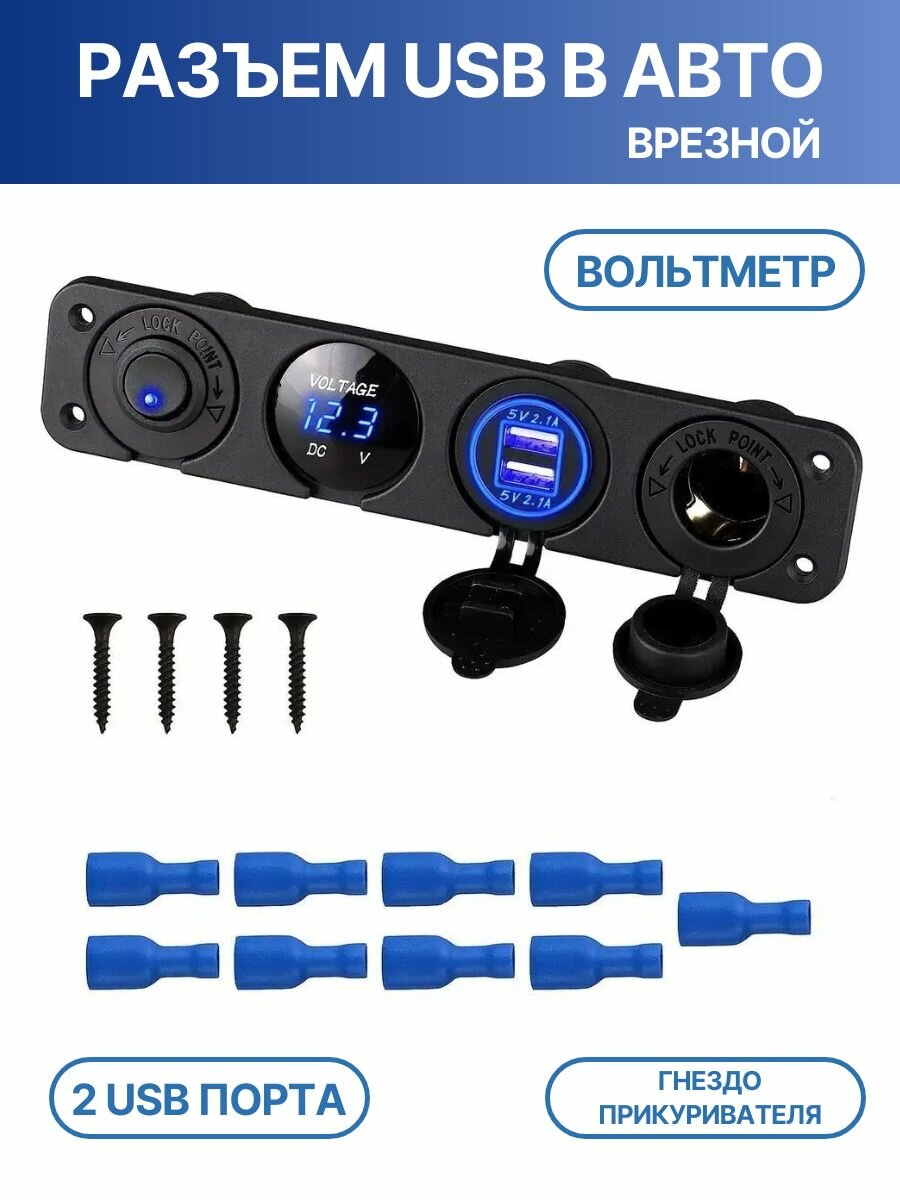 Разъем USB в авто врезной 5V 2.4A / Розетка в машину, вольтметр / Разветвитель автомобильный интересное: