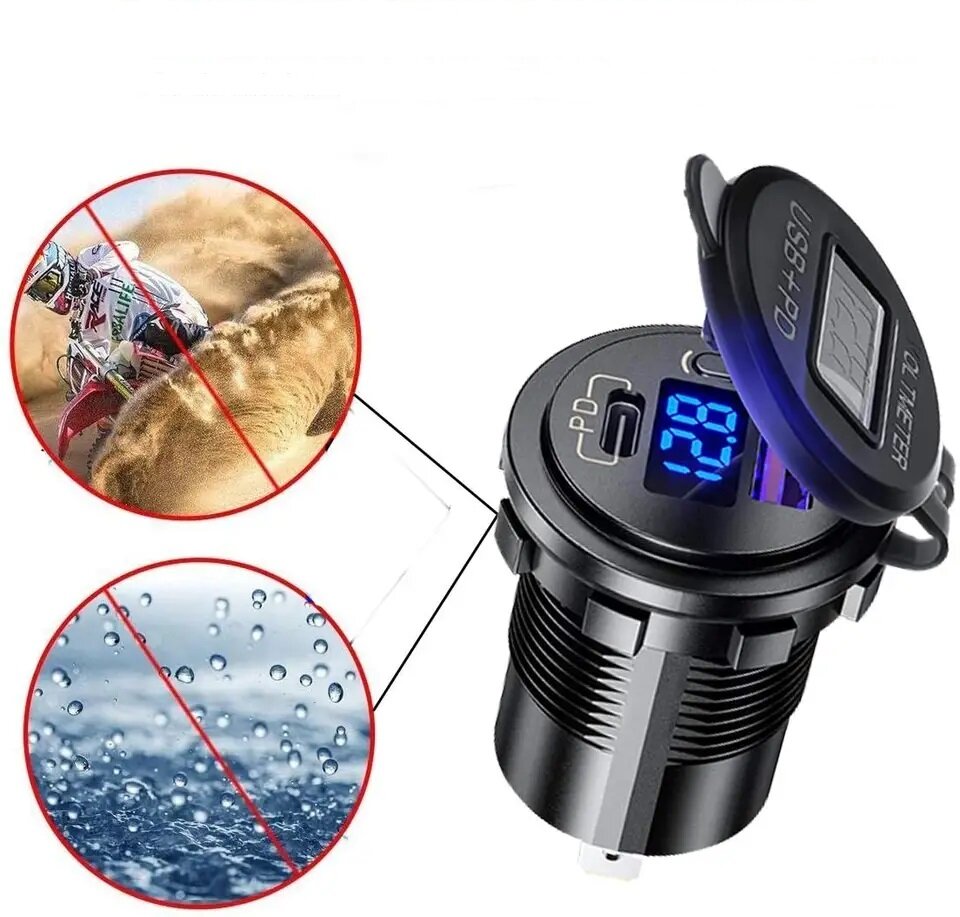 Купить Разъем USB в авто врезной круглый Type-C + быстрая зарядка 3.0 / Розетка в машину, вольтметр