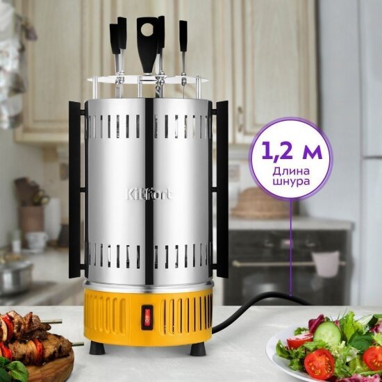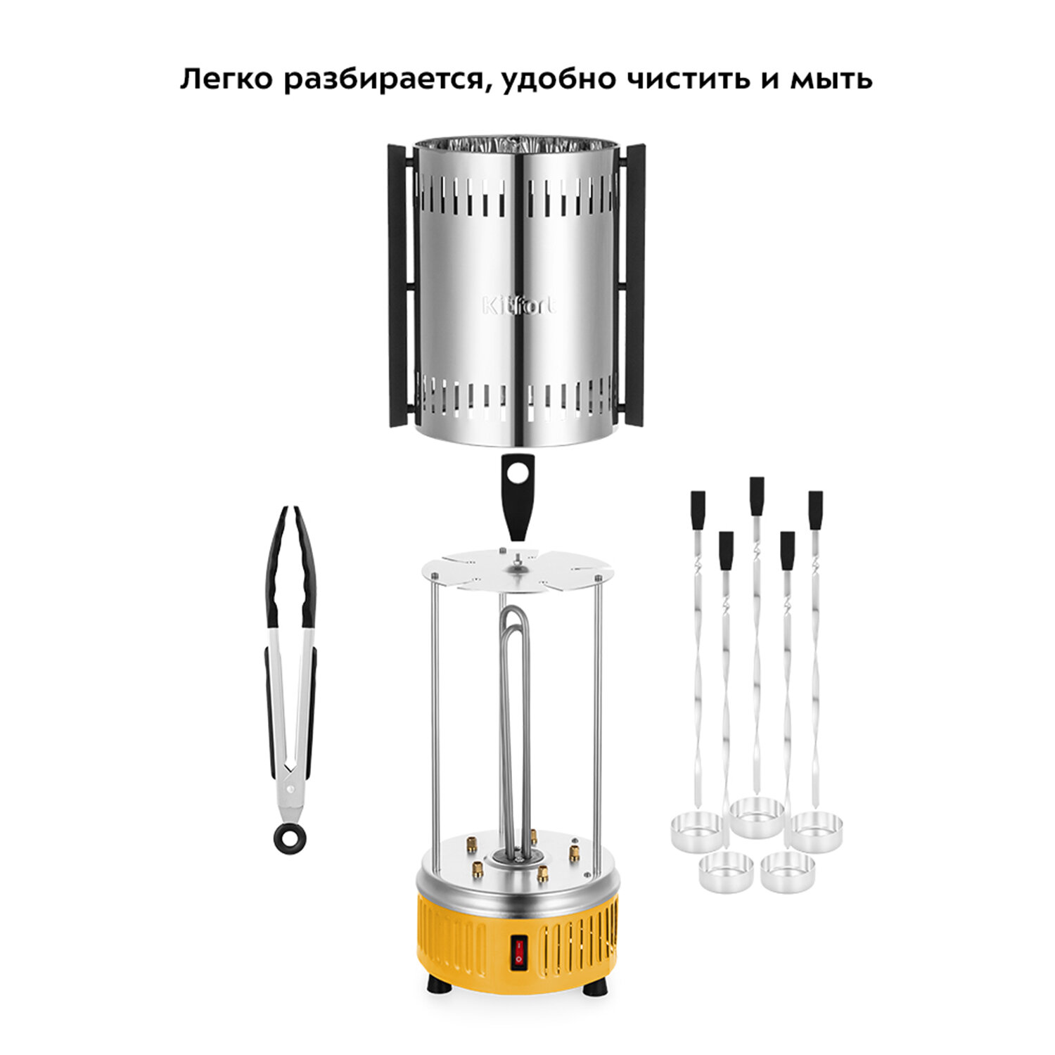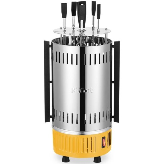 Шашлычница электрическая Kitfort КТ-1408 900Вт нержавеющая сталь/желтый