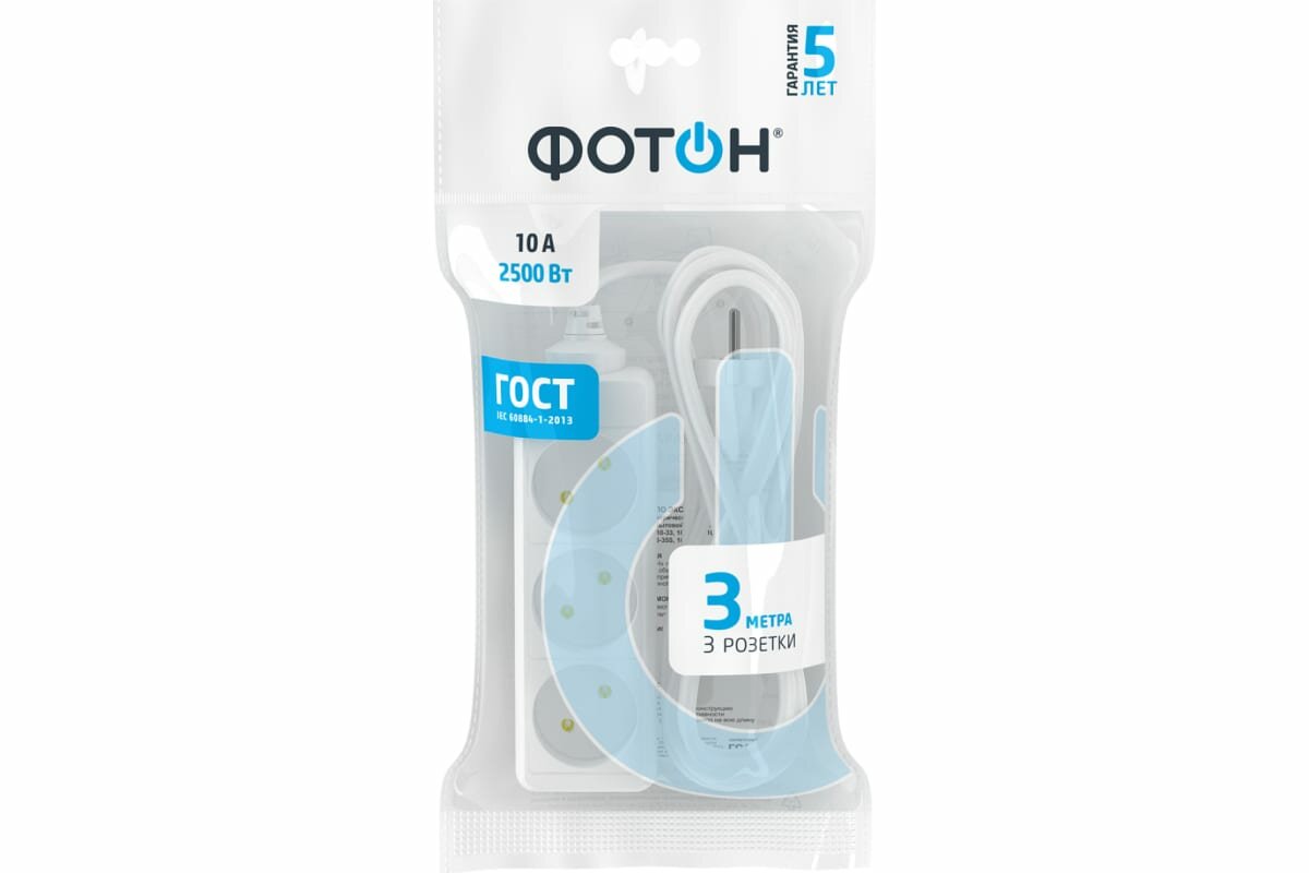 Фотон Удлинитель сетевой 10-33, 3м, 3 розетки, 10А, Белый 21112 интересное:
