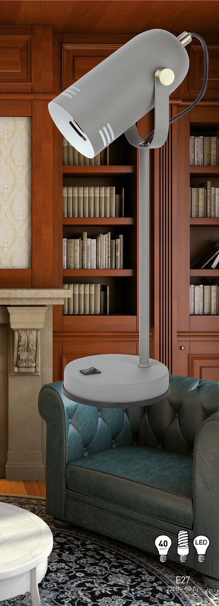 | Дополнительная информация | Функциональные преимущества: Светильник может использоваться с лампой накаливания, компактной люминесцентной лампой (КЛЛ) или светодиодной (LED) лампой. Металлический корпус с гальванизированными элементами. Устойчивая конструкция. Оптимальные размеры для идеального размещения на столе. Удобная регулировка направления света. Трендовый дизайн и цвета. |