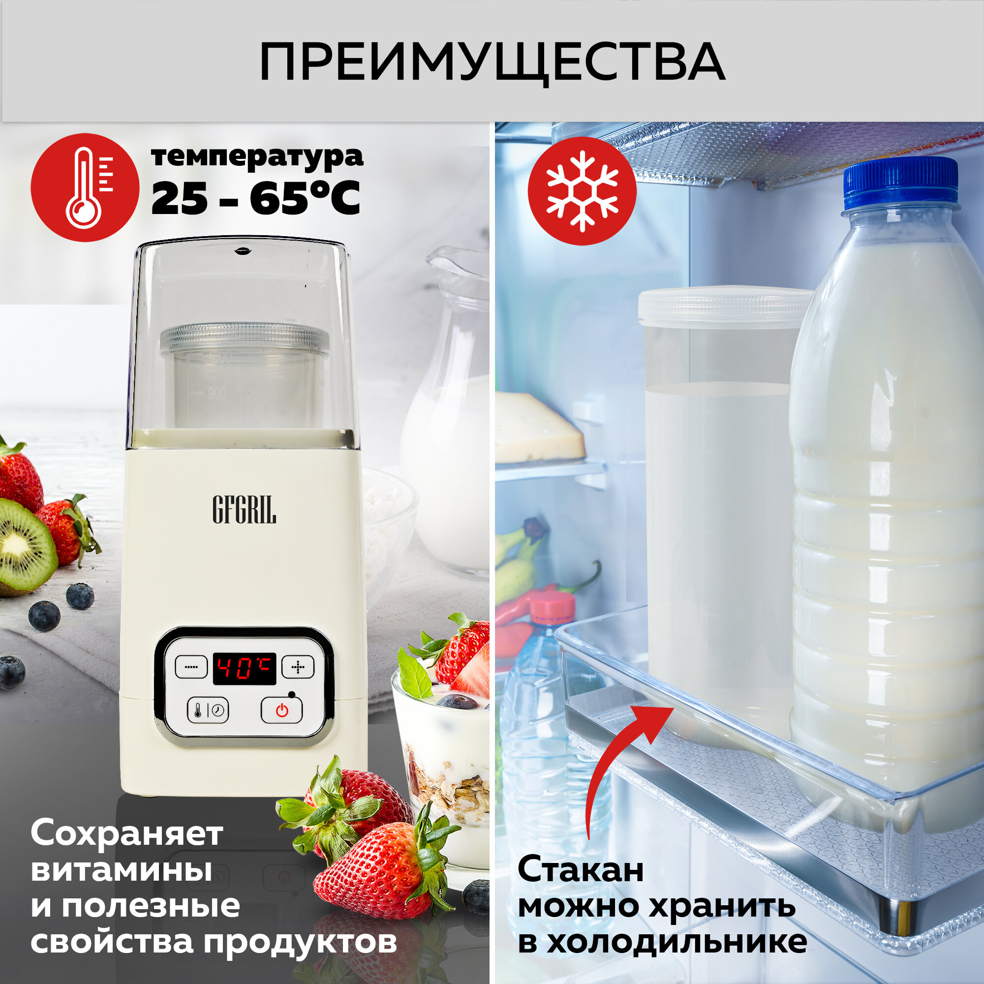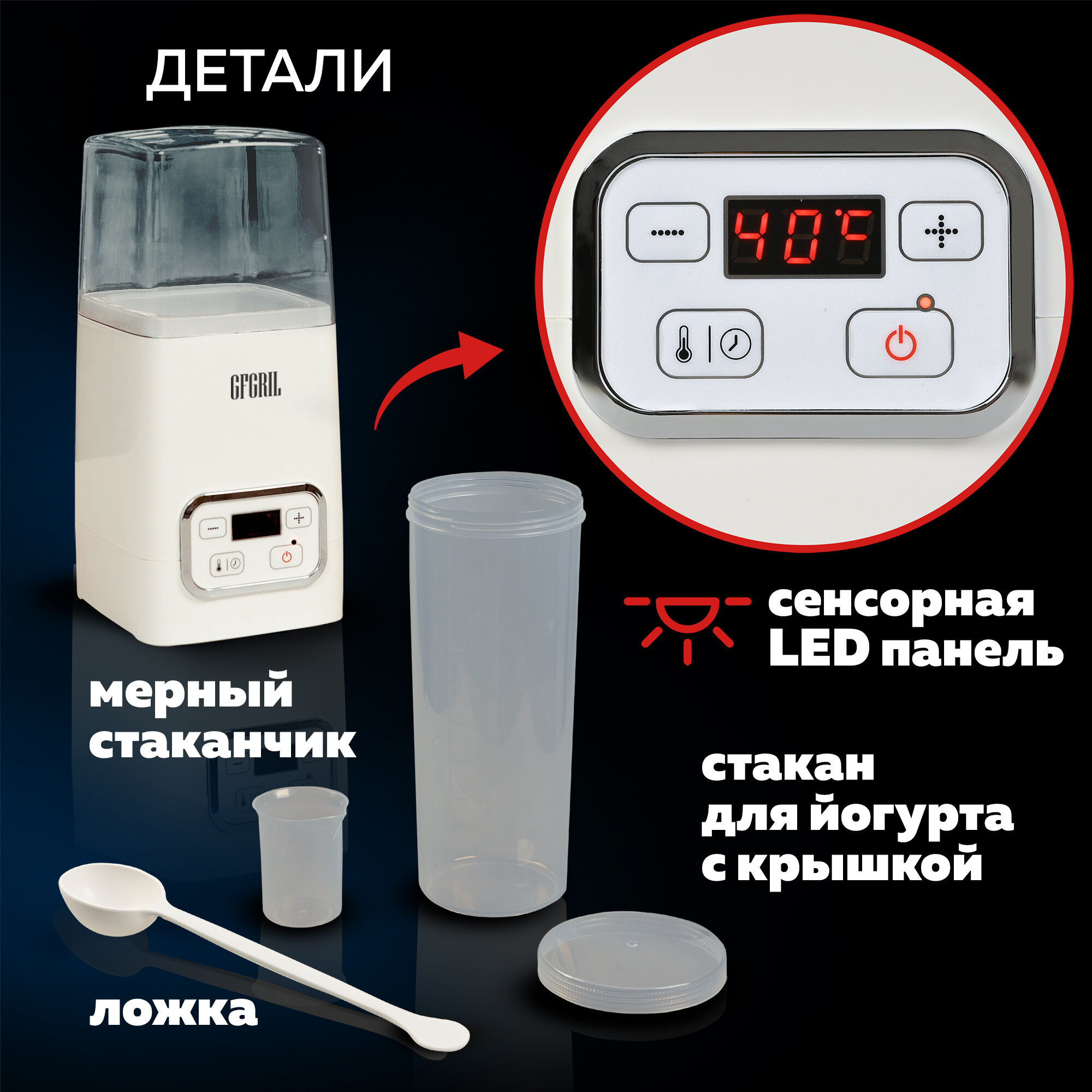GFGRIL Йогуртница GF-YM300 на 1 л, регулировка времени и температуры интересное: