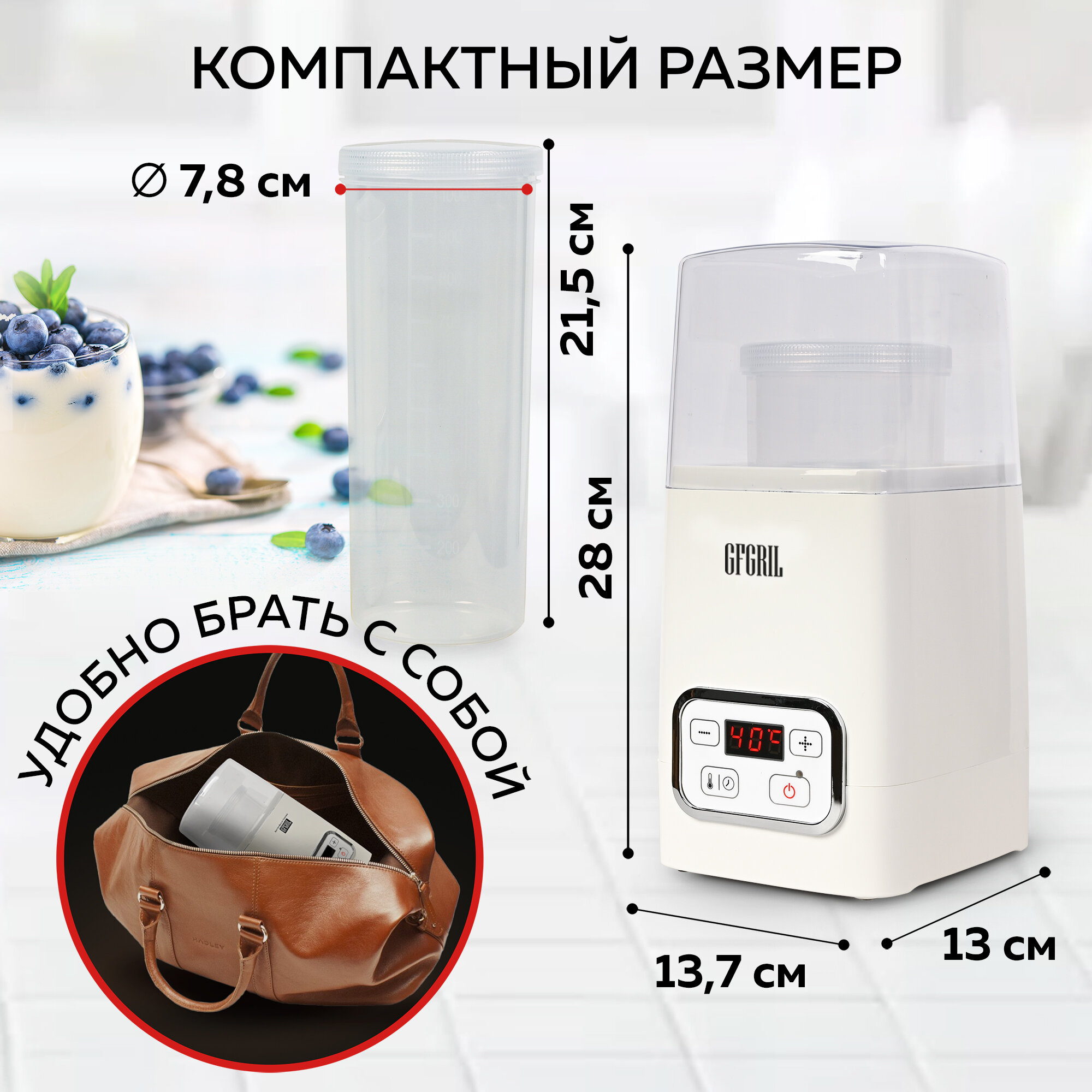Йогуртница GFGRIL GF-YM300 1 л, от 25 до 65 градусов, таймер