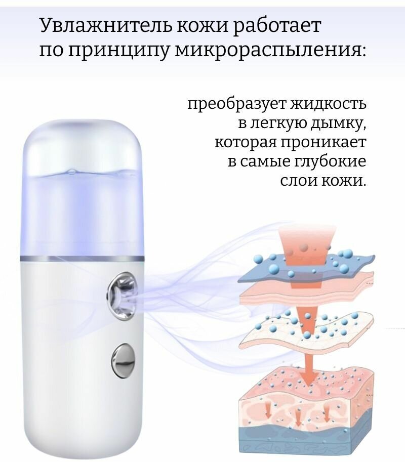 Увлажнитель для кожи портативный, наноувлажнитель женский, распылитель для лица компактный