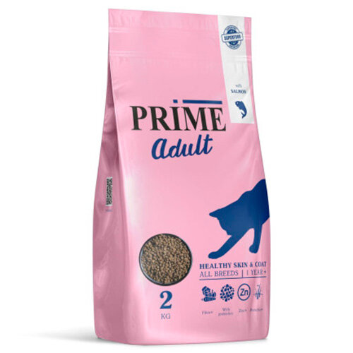 Сухой корм PRIME HEALTHY SKIN COAT для кошек с 12 месяцев, здоровая кожа и шерсть, с лососем 2 кг