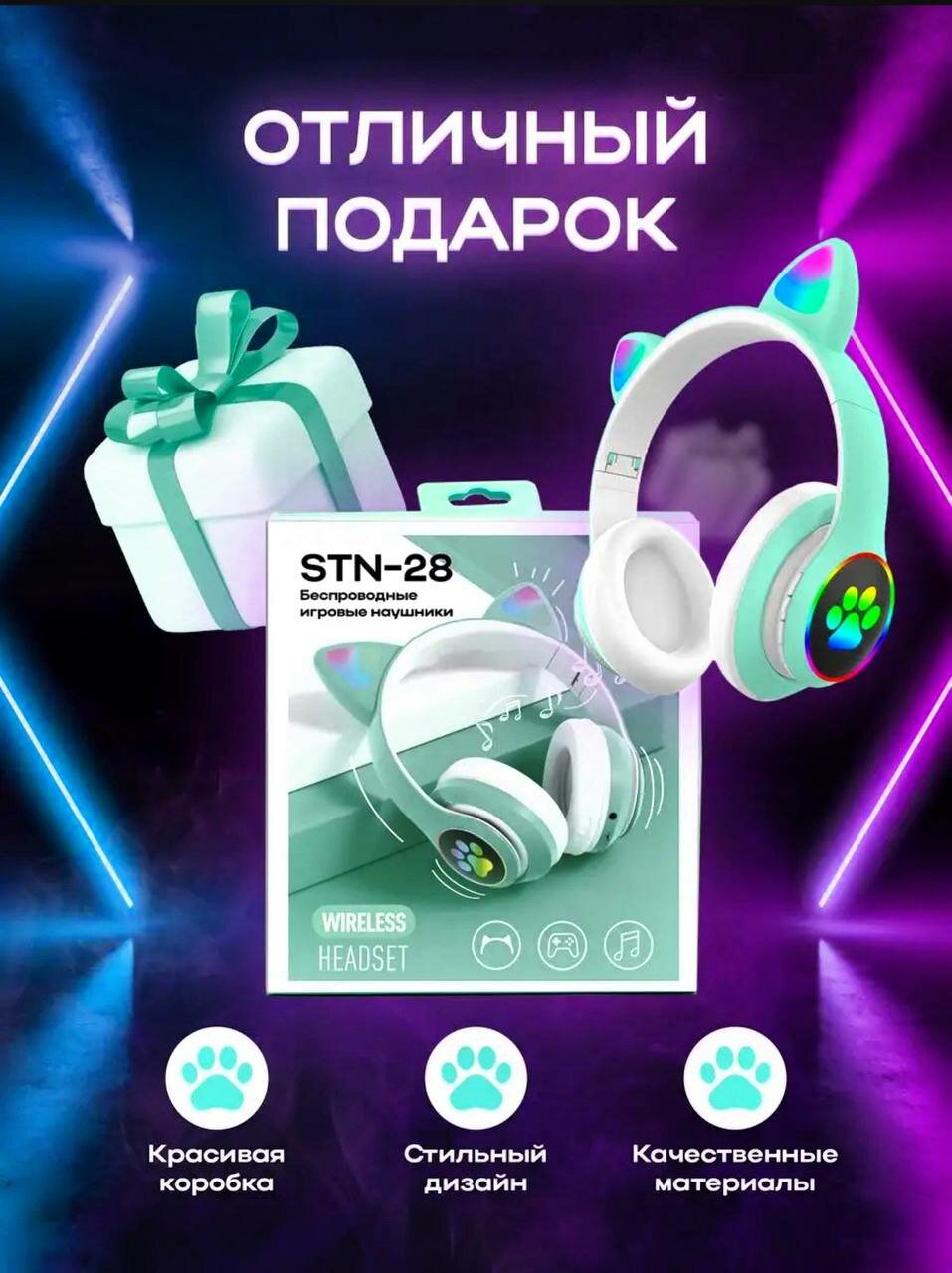 Беспроводные Bluetooth наушники бирюзовые с кошачьими светящимися ушками для детей и взрослых Cat Ear VZV-28M бирюзовый