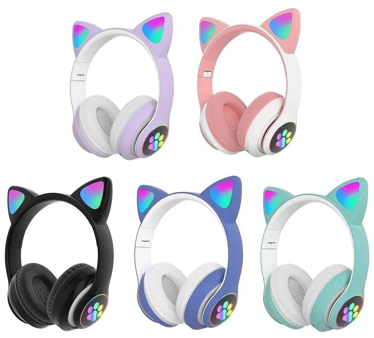 Беспроводные Bluetooth наушники с кошачьими светящимися ушками для детей и взрослых / Cat Ear VZV-28M