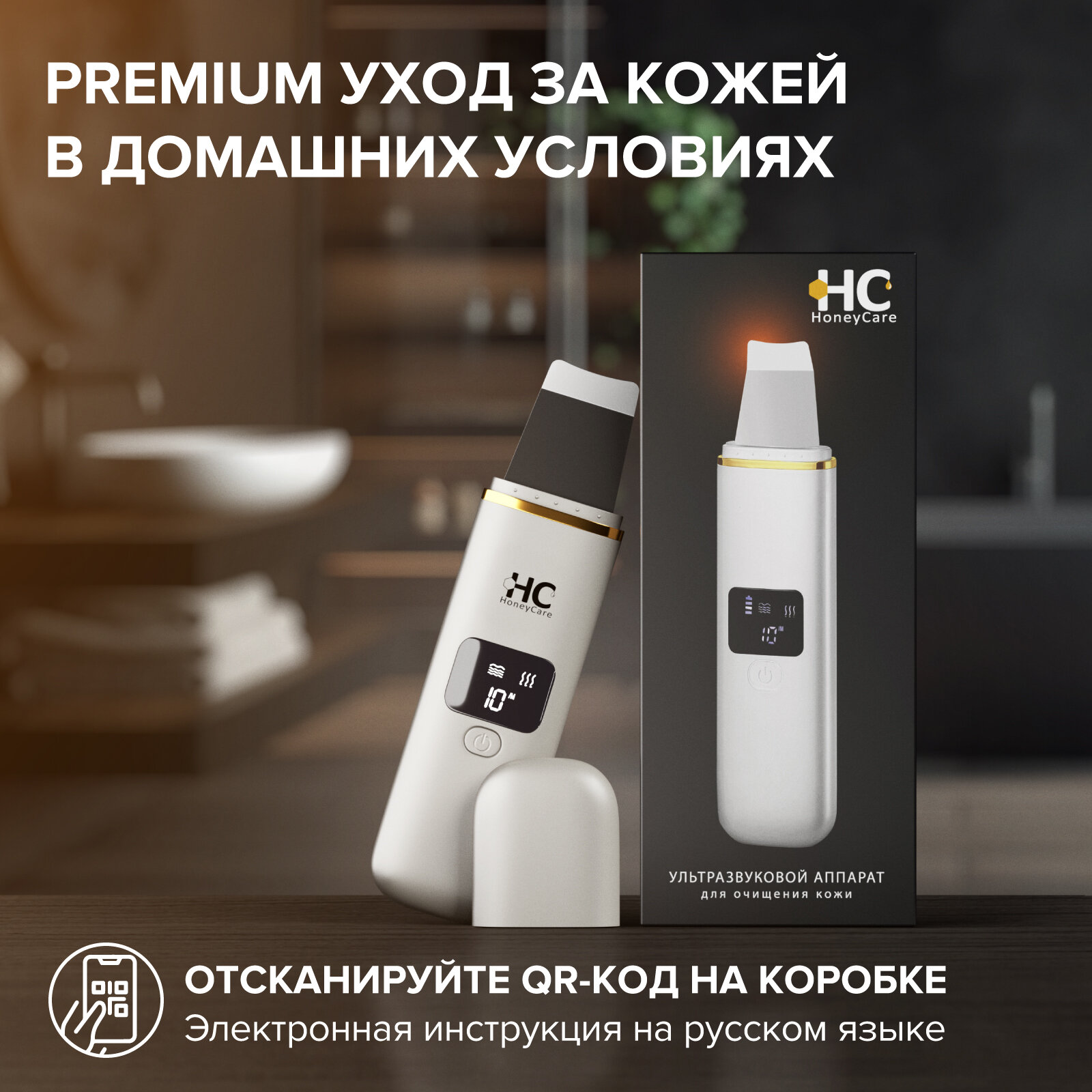 Ультразвуковая чистка лица, домашний аппарат для лифтинга HoneyCare с дисплеем, фонофорез, глубокое очищение кожи. Подарок на 8 марта