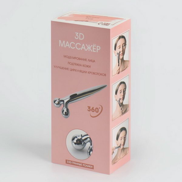 Массажёр д/лица пластик/гальван 3D 14,3*4,5см серебр к/ кор QF 5431814