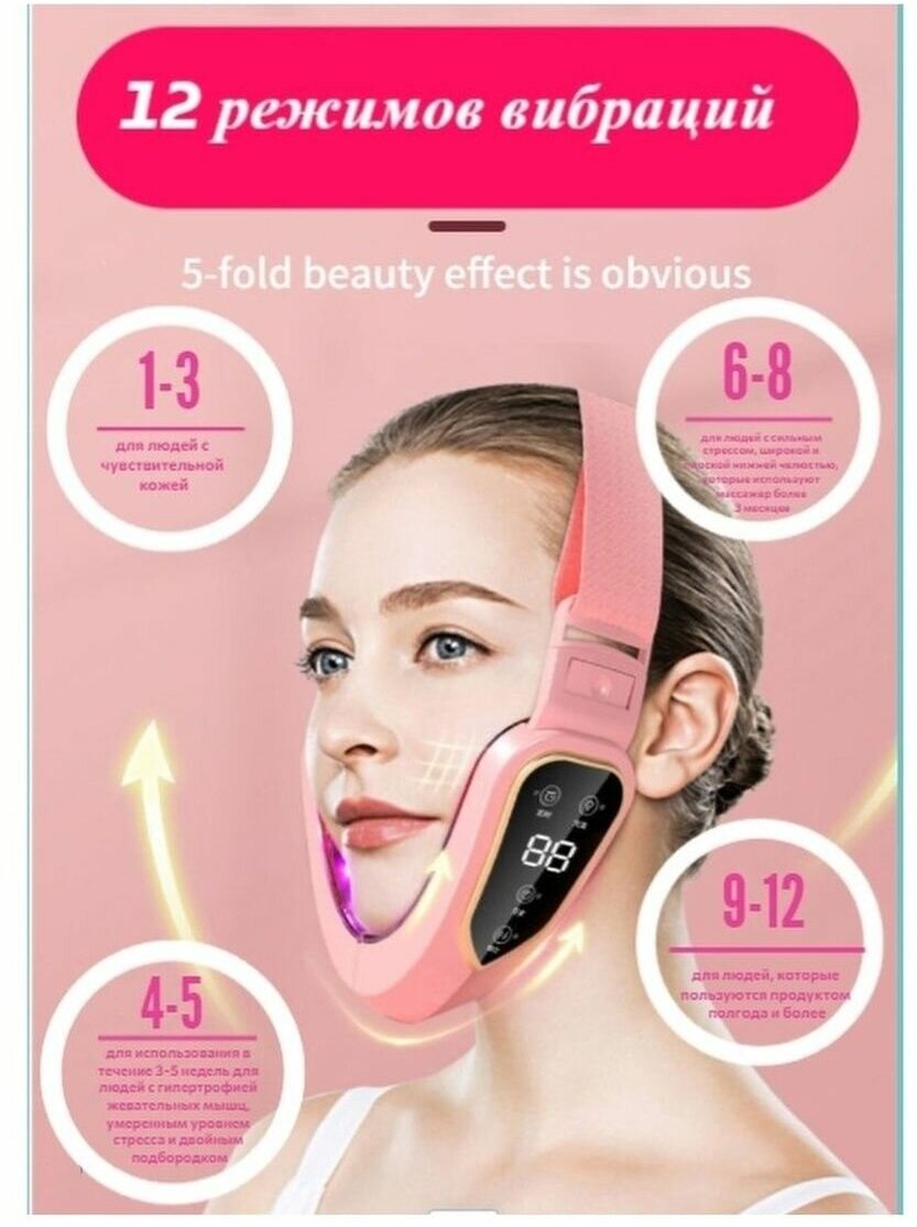 Светодиодный лифтинг-массажер для подтяжки контура лица, розовый интересное: