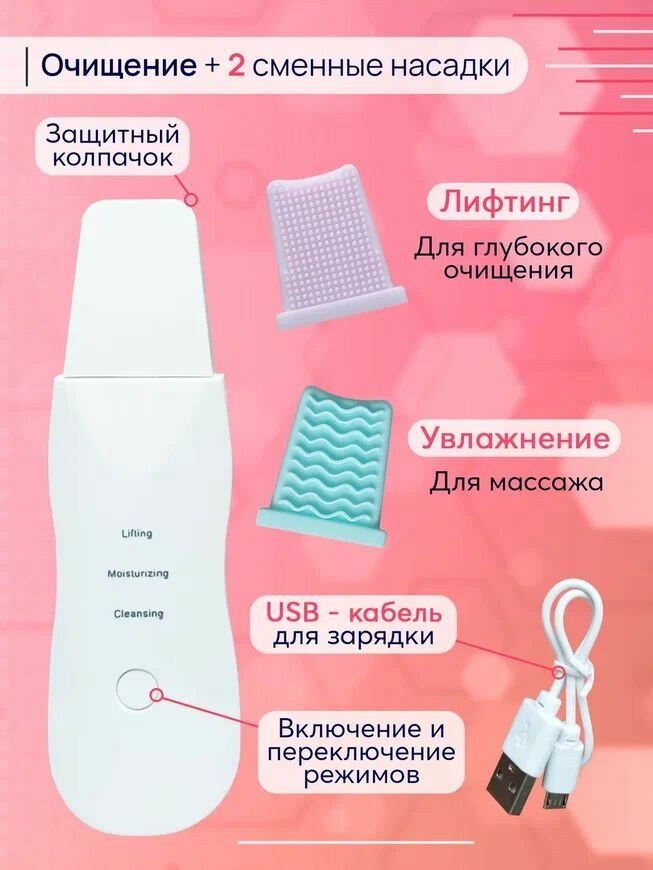 Ультразвук для чистки И лифтинга кожи лица (2 силиконовых насадки в комплекте) интересное: