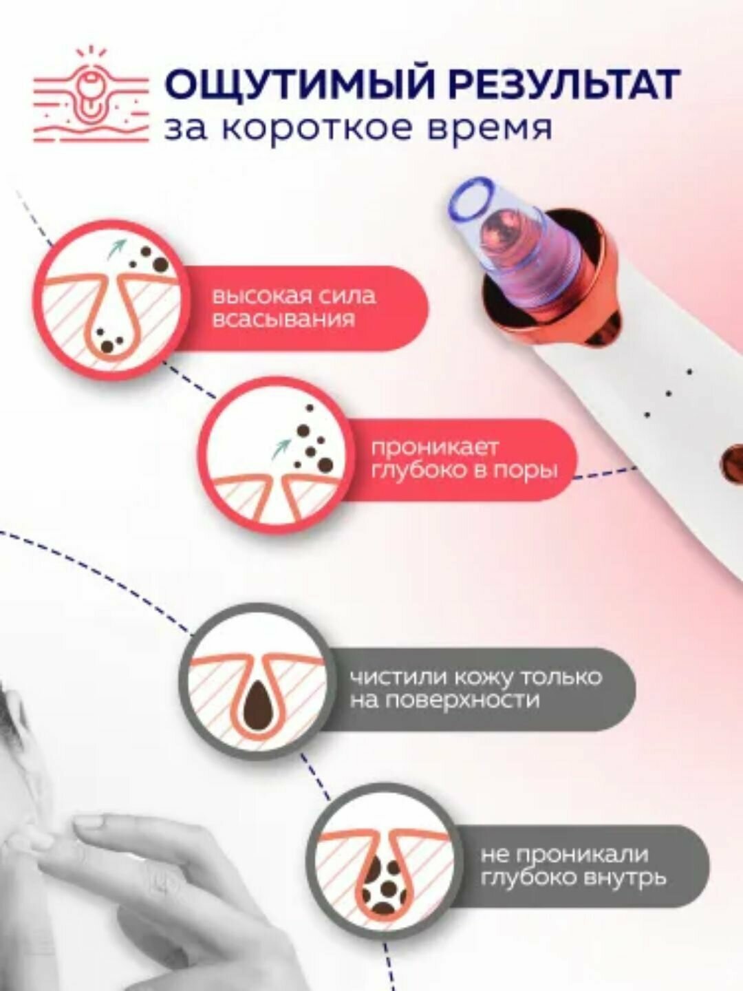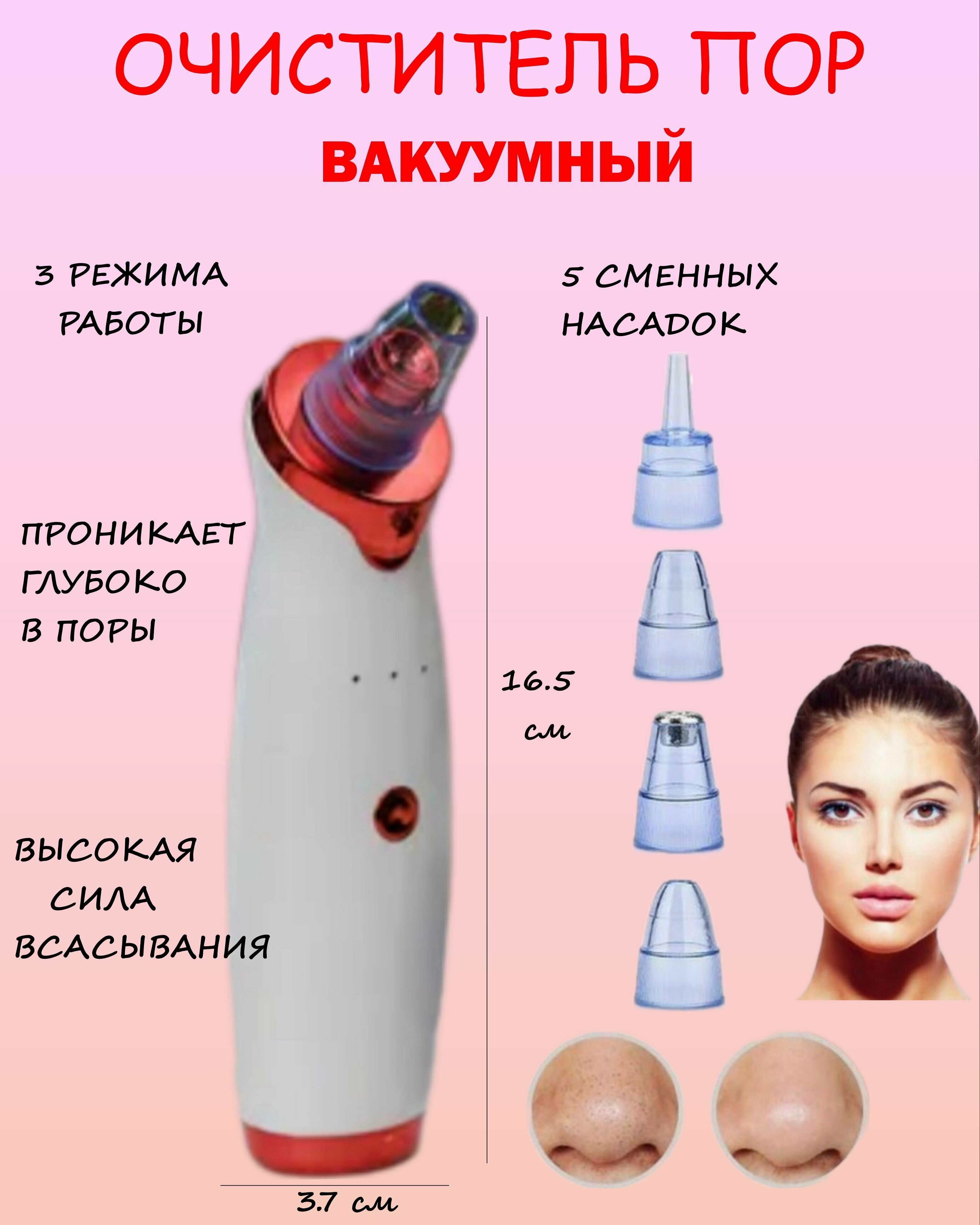Вакуумный очиститель пор с 5 насадками Ю3-18, прибор для чистки лица, косметический аппарат интересное:
