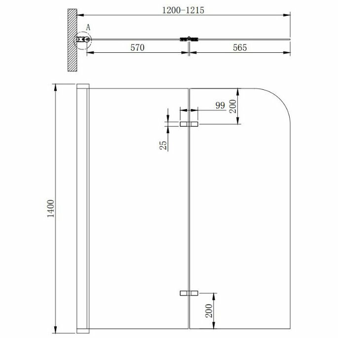 Шторка на ванну Cezares Eco 1200x1450 мм Eco-O-V-21-120/140-C-Cr
