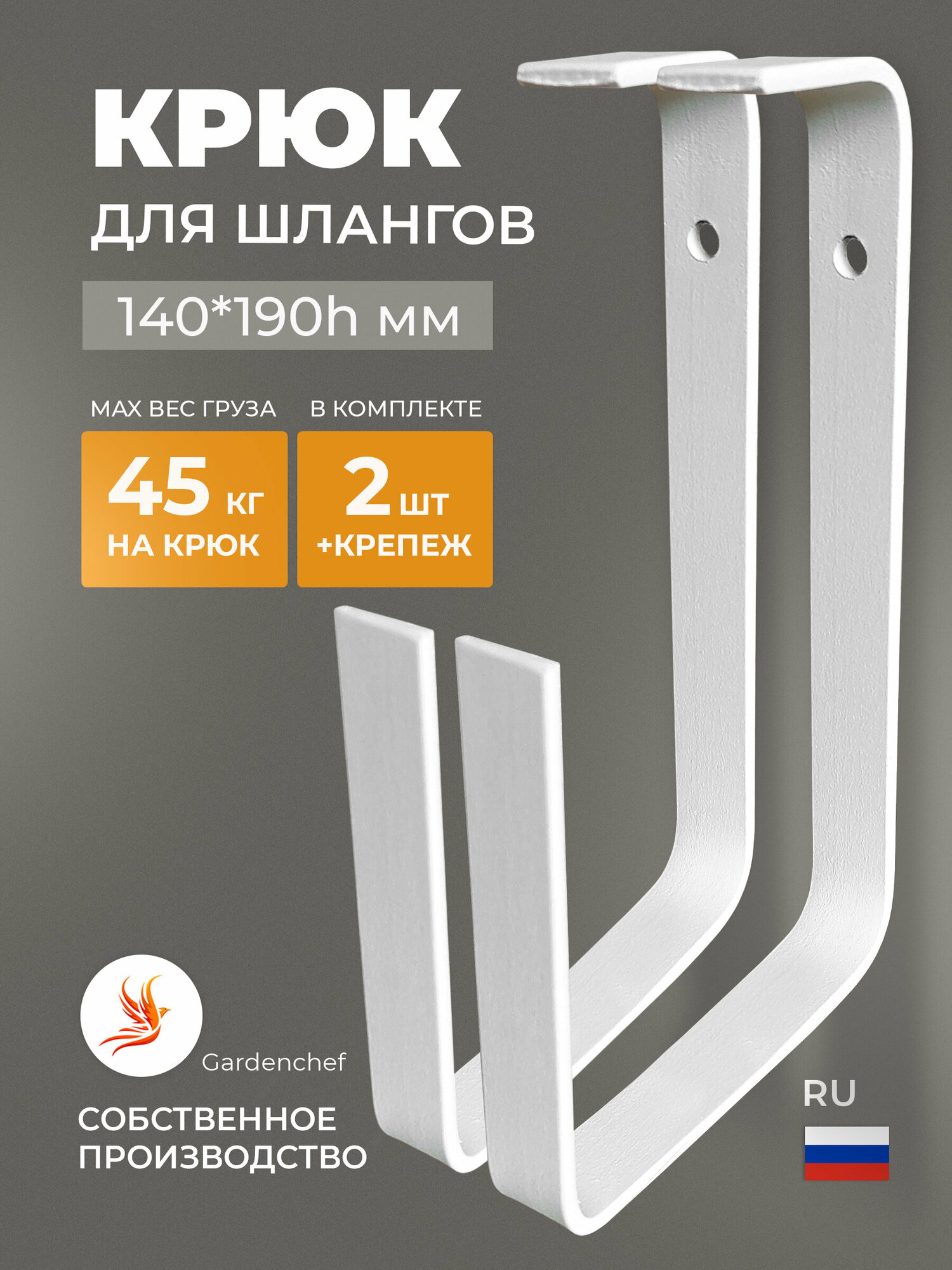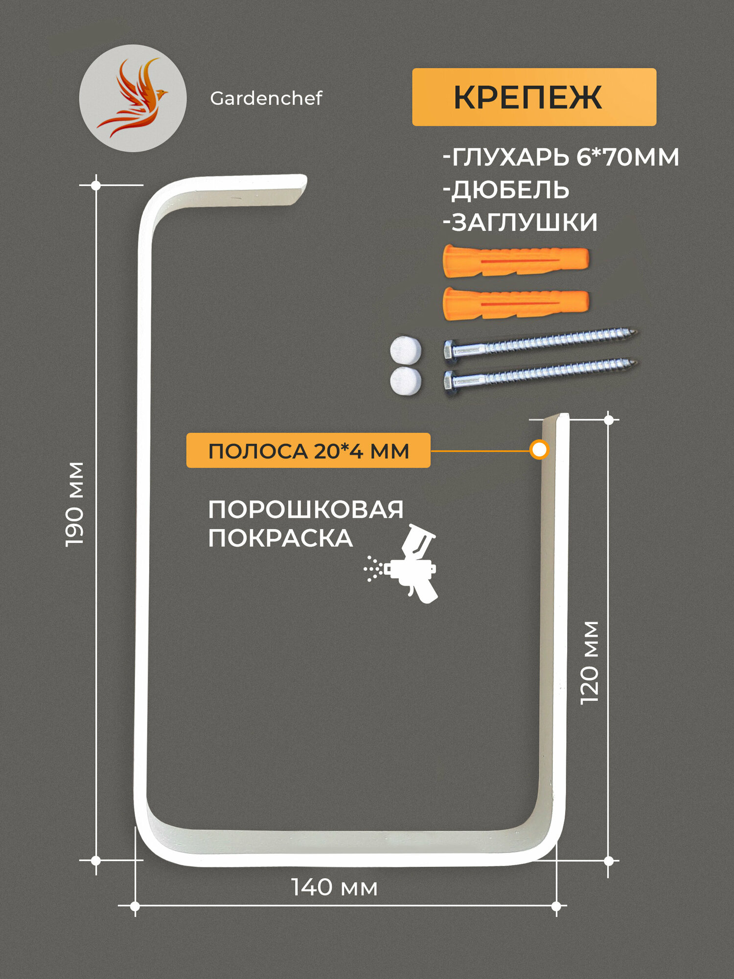 | Комплектация | Крюк из полосы 20х4мм - 2шт, Крепеж(Глухарь, Дюбель), Заглушки в цвет крюка |