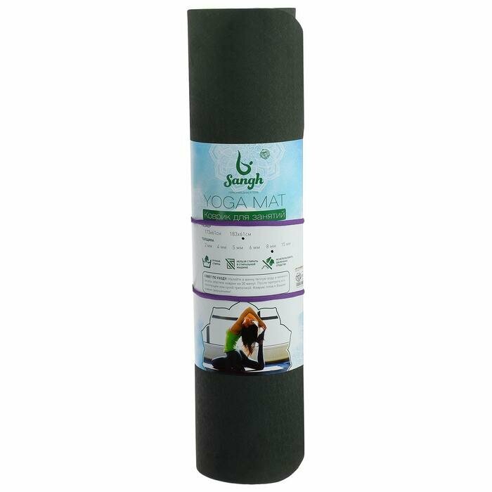 Коврик Sangh, для йоги, размер 183 х 61 х 0,8 см, двухцветный, цвет тёмно-зелёный