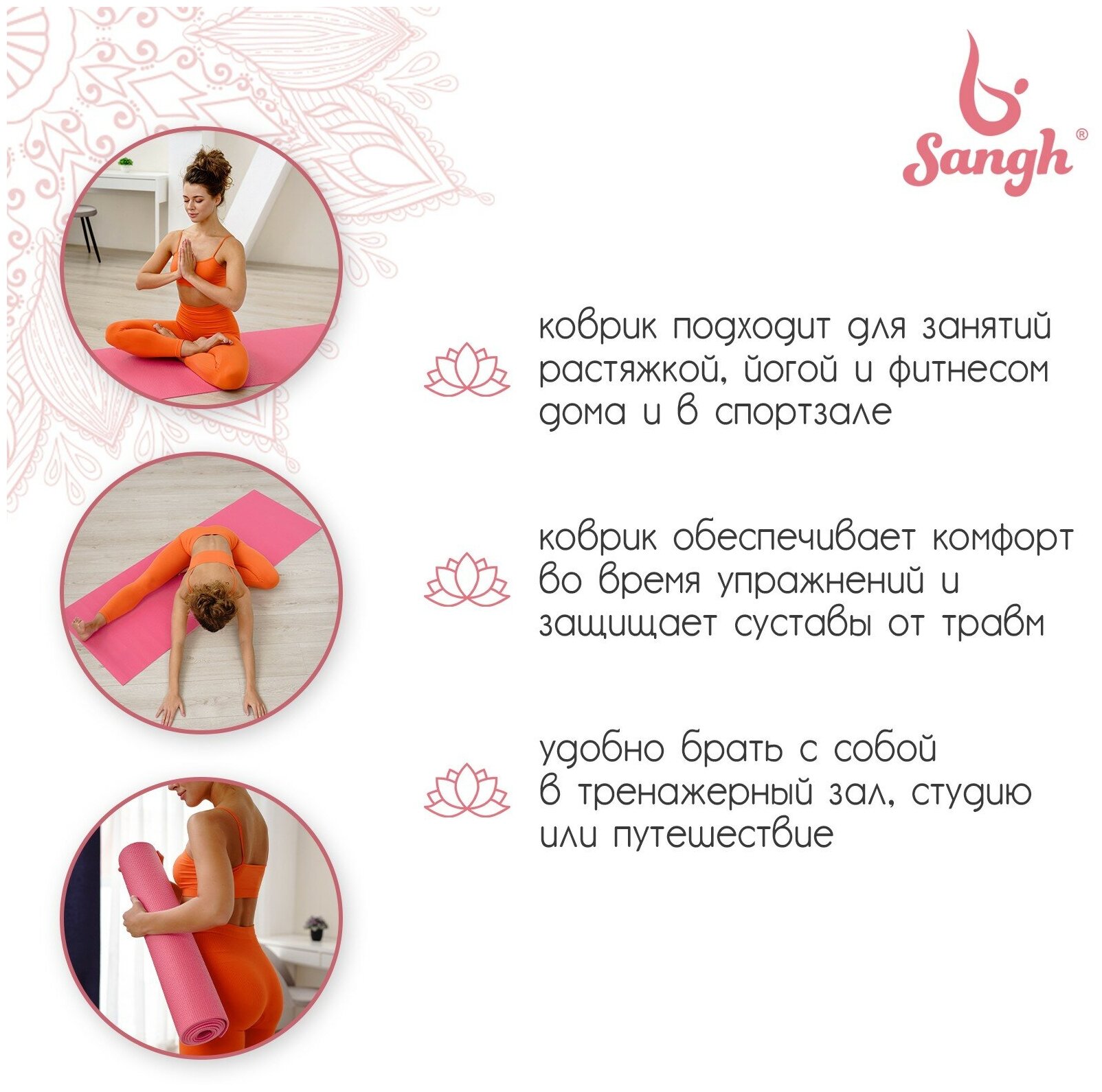Купить Коврик для йоги 173 х 61 х 0,3 см, цвет розовый Sangh 3098561 .