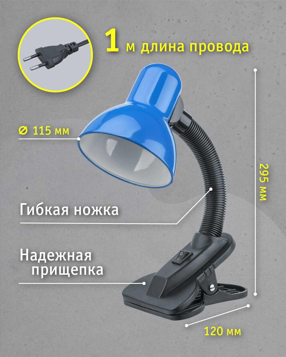 | Плюсы: | Мощная прищепка. Удобный клавишный выключатель на корпусе лампы. Хорошая подвижность самого плафона |