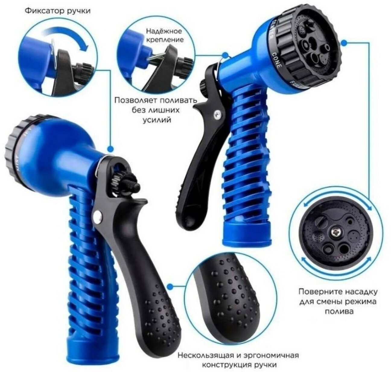 | Минусы: | при очень большом напоре воды шланг растянулся всего 9 метров |