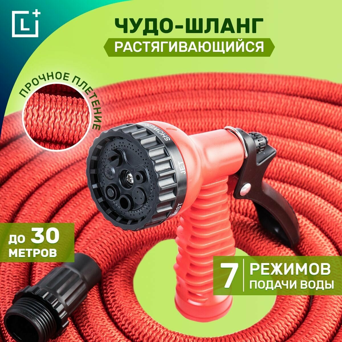 Садовый шланг для полива растягивающийся "Ультра", шланг для дачи с распылителем Леомакс, поливочный шланг с насадкой-распылителем, 30 м, Leomax интересное: