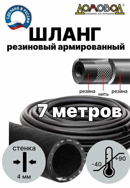 Купить Шланг для полива резиновый армированный кварт d16 мм длина 7 м всесезонный с кордом ДомовоД ША1016-7