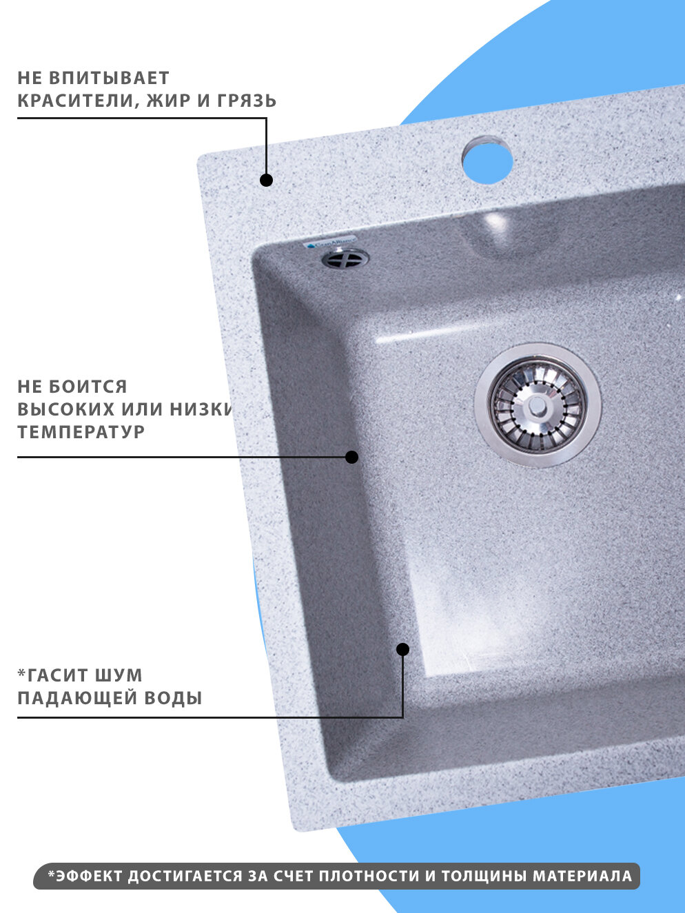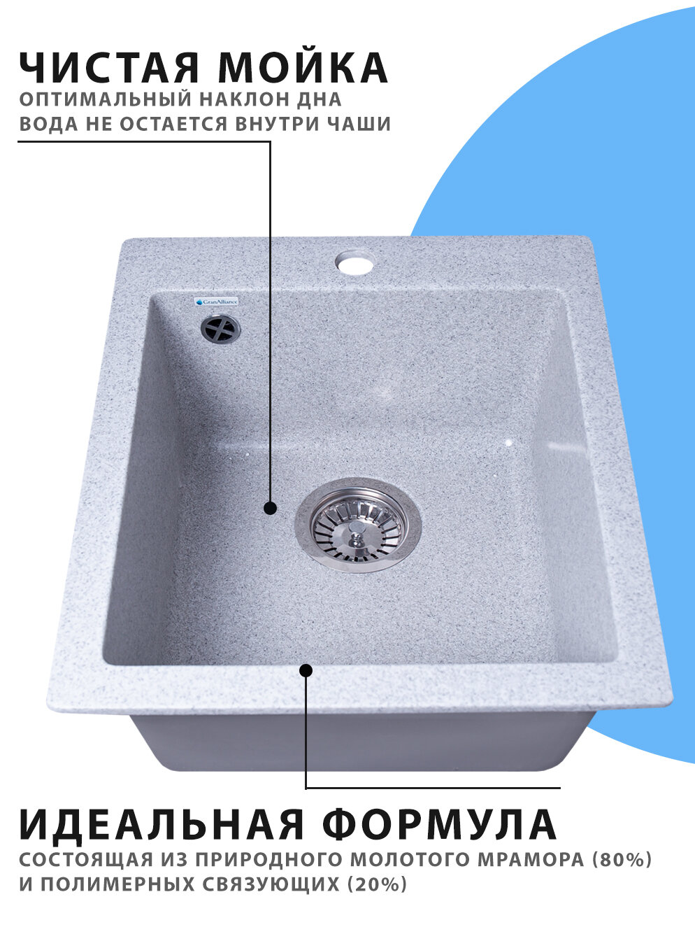 СохранитьВрезная мойка для кухни из искусственного камня GranAlliance, серая с сифоном (417х492х205) интересное: