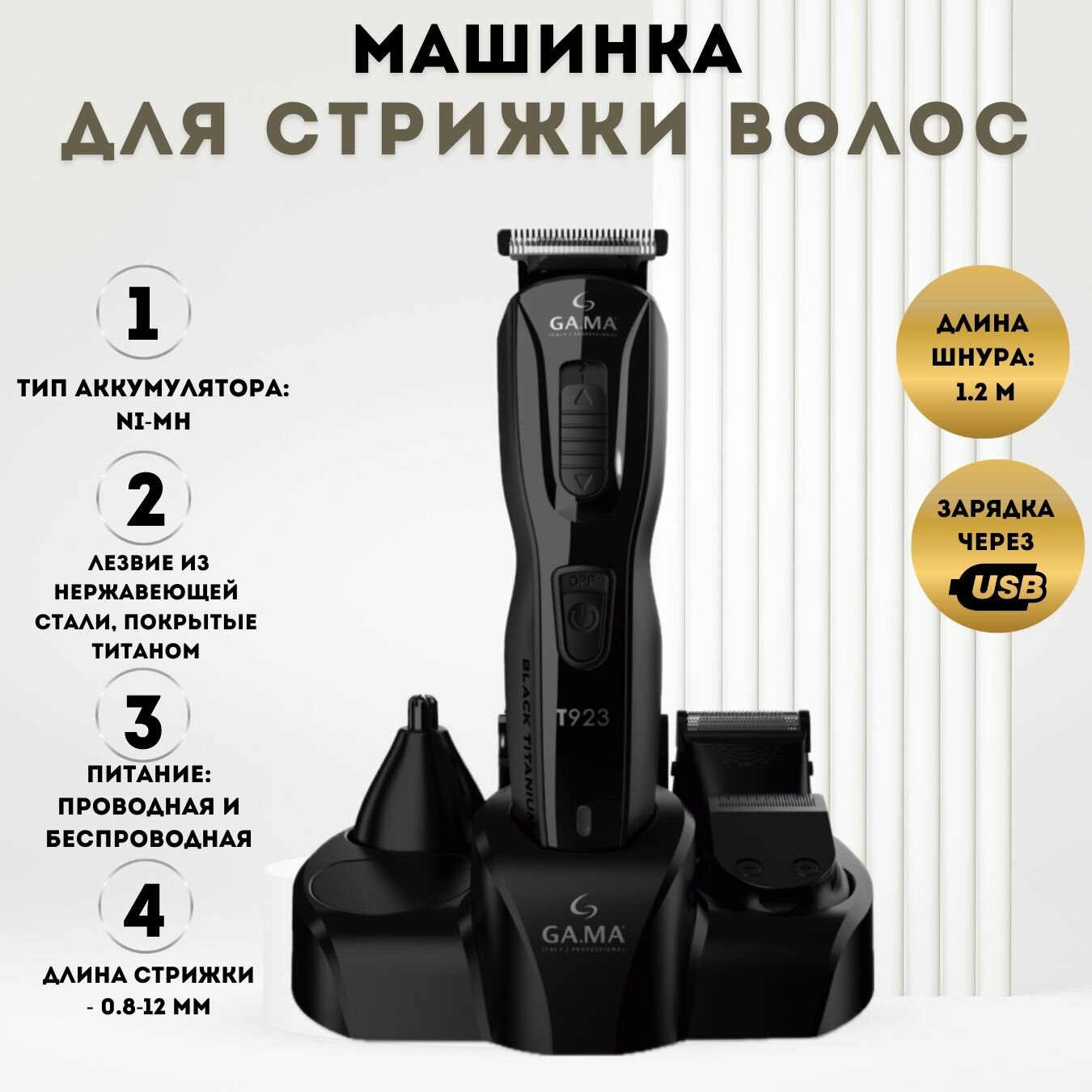 Машинка для стрижки волос GA.MA Black Titanium T923, многофункциональная, аккумуляторная