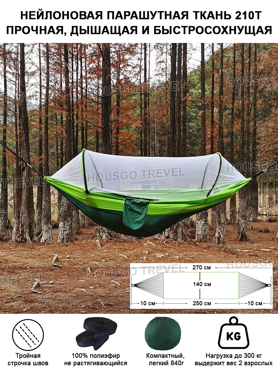 Гамак HOUSGO TREVEL для дачи и сада подвесной с антимоскитной сеткой товар для путешествий походный туристический интересное: