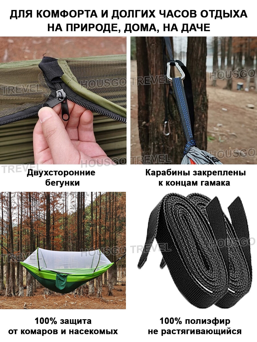 Купить Гамак HOUSGO TREVEL для дачи и сада подвесной с антимоскитной сеткой товар для путешествий походный туристический