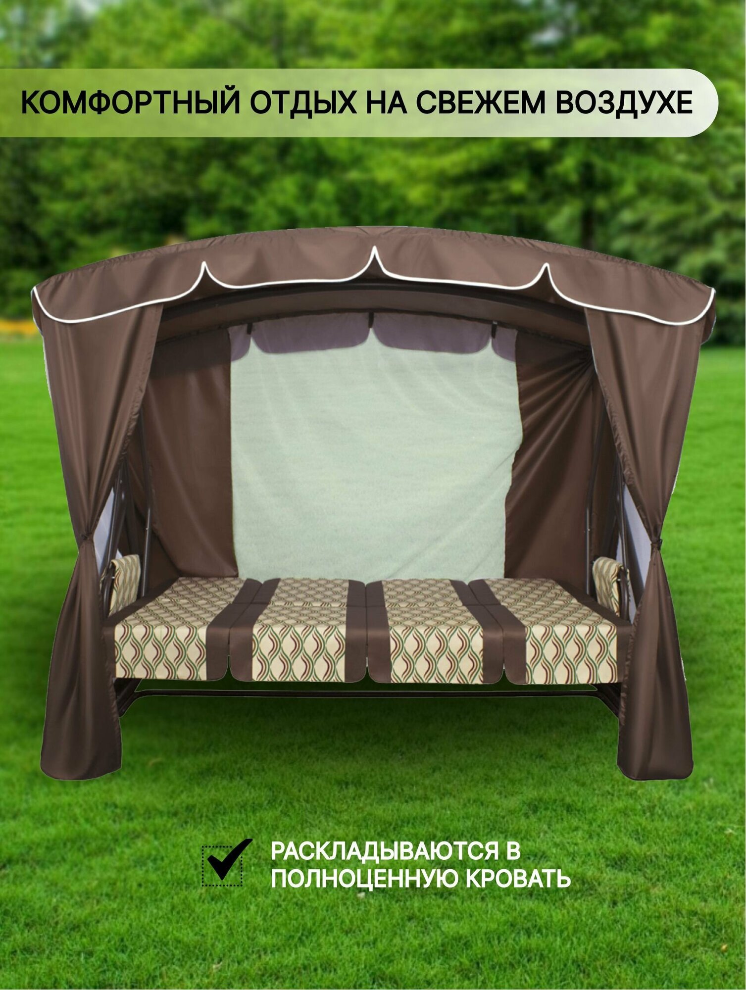 Качели садовые 4-местные, 232х125х195 см, 380 кг, Arno, Оазис Люкс+, раскладываются в кровать, с москитной сеткой, коричневые, полусоты, 2016-КД- 40/Л интересное: