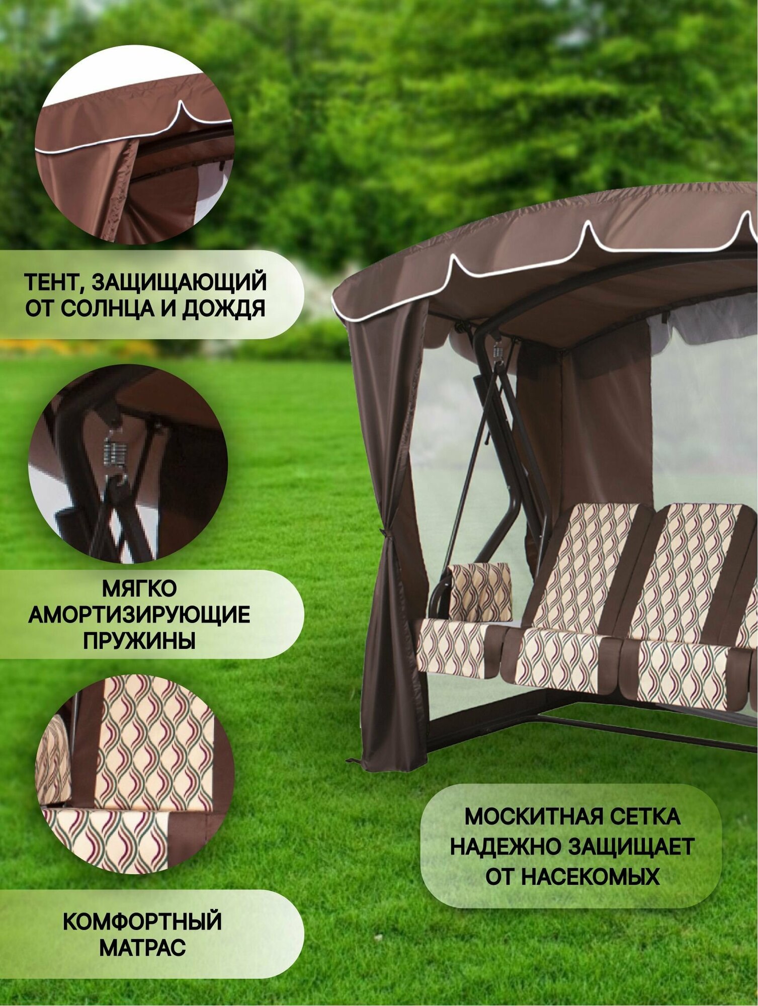 Качели садовые Arno Оазис Люкс+ 4-местные, раскладные, с сеткой