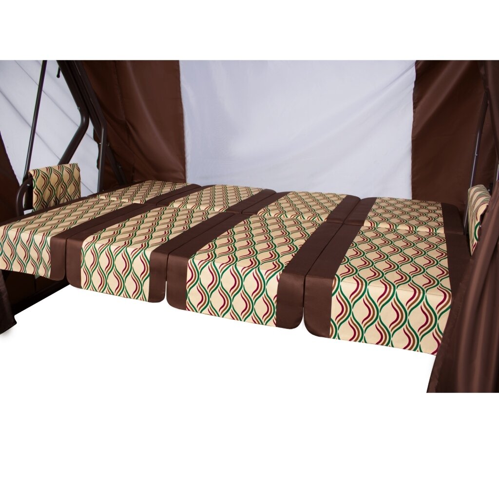 Качели садовые 4-х местные Ольса Шатер ткань панама каркас коричневый, ткань полоска бежево-коричневная