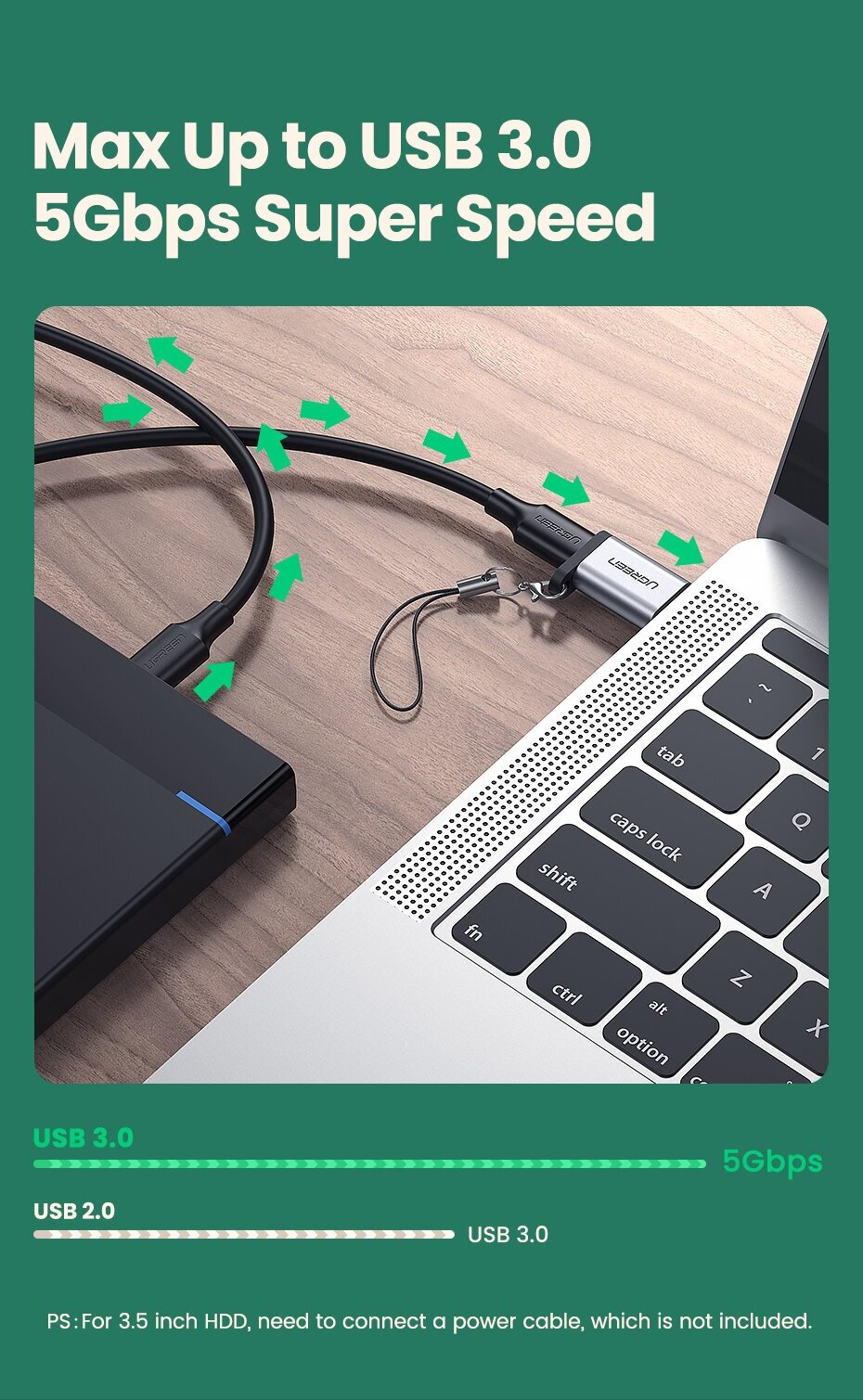 Адаптер-переходник Ugreen USB A 3.0 -USB C 3.1