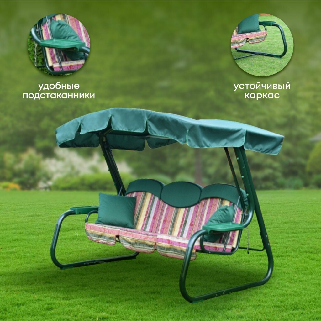 Купить Качели садовые 3-местные, 237.6х144х162.7 см, 320 кг, Мари, подушка зеленая, с 1283, металл