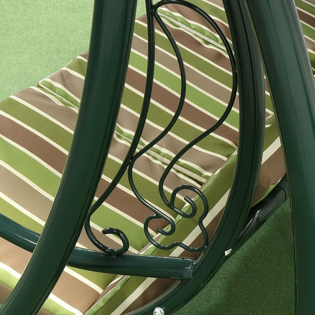 Качели садовые 3-местные, 198х115х176 см, 250 кг, Green Days, с москитной сеткой, темно-зеленые, полосы, LG5465M, металл интересное: