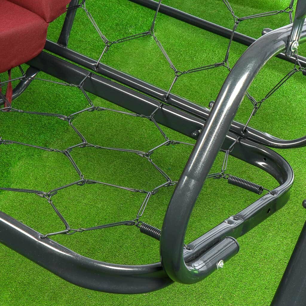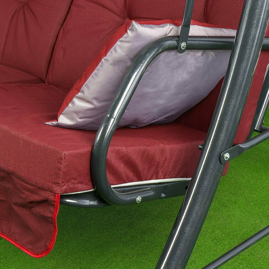 Качели садовые 3-местные, 223х161х200 см, 280 кг, Пагода, бордо, без рисунка, подушка, сталь интересное: