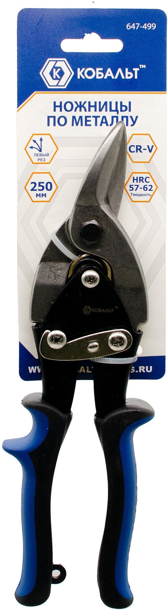 Ножницы по металлу ручные кобальт левый рез 250 мм, CR-V блистер 647-499