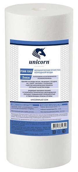 Картридж Unicorn PSBB 1005 механический из вспененного полипропилена 10BB 5 микрон
