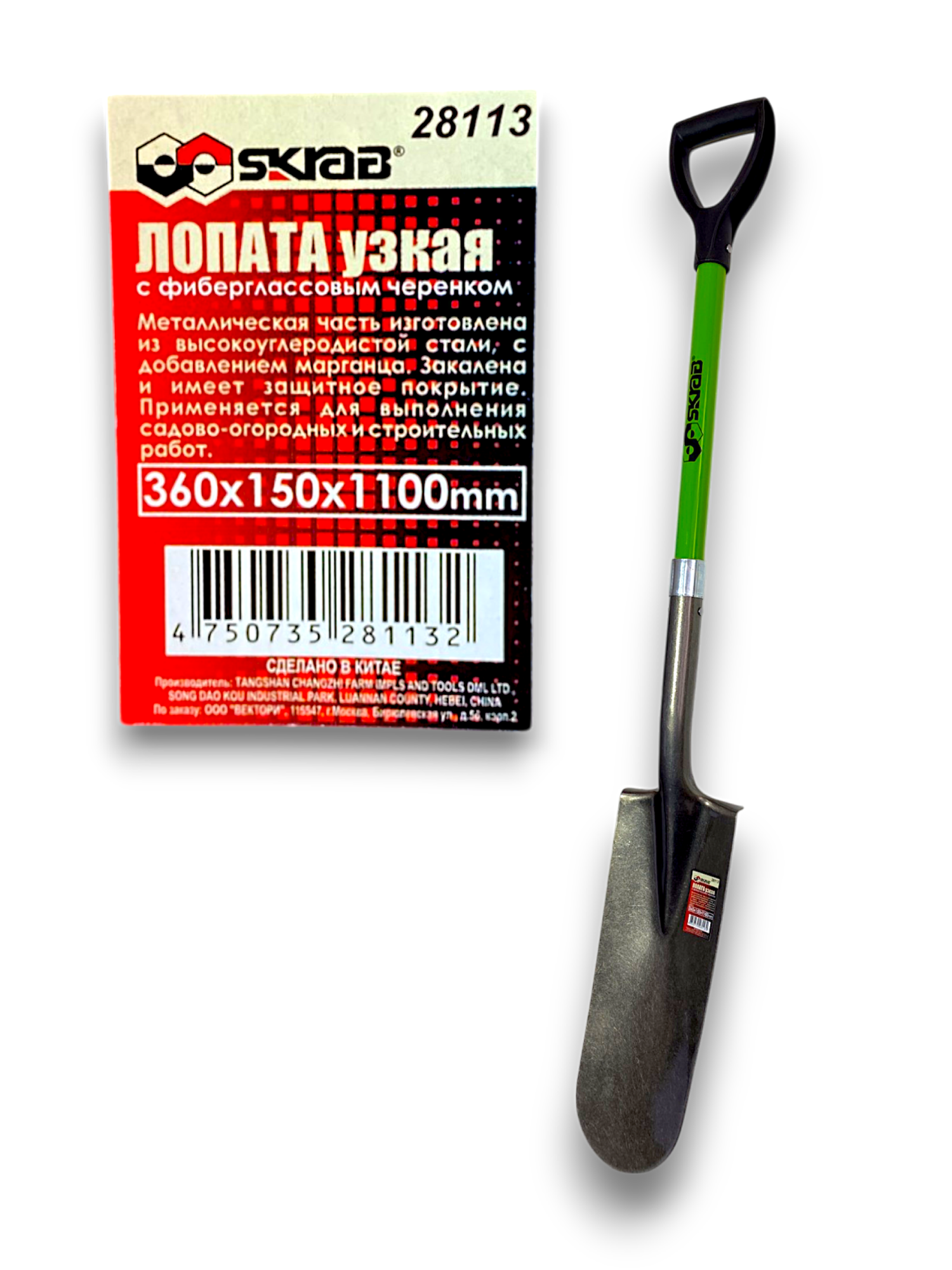 Лопата штыковая узкая, с фиберглассовой ручкой SKRAB 28113
