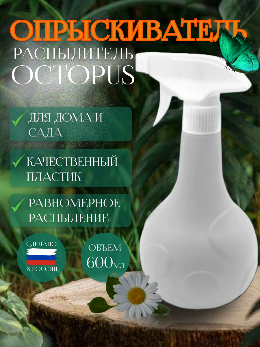 Опрыскиватель для растений для цветов комнатных 600 мл OCTOPUS пульверизатор для воды натуральный интересное: