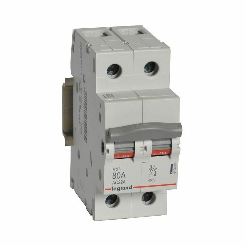 Купить Рубильник модульный Legrand RX3, 2 полюса, 80A, ширина 2 DIN-модуля