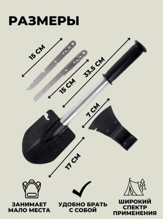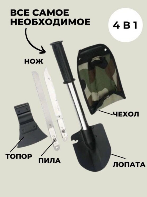Лопата туристическая многофункциональная 4 в1 в чехле LT-002/ Складная туристическая интересное:
